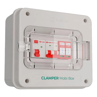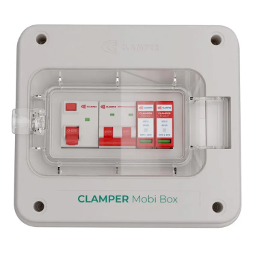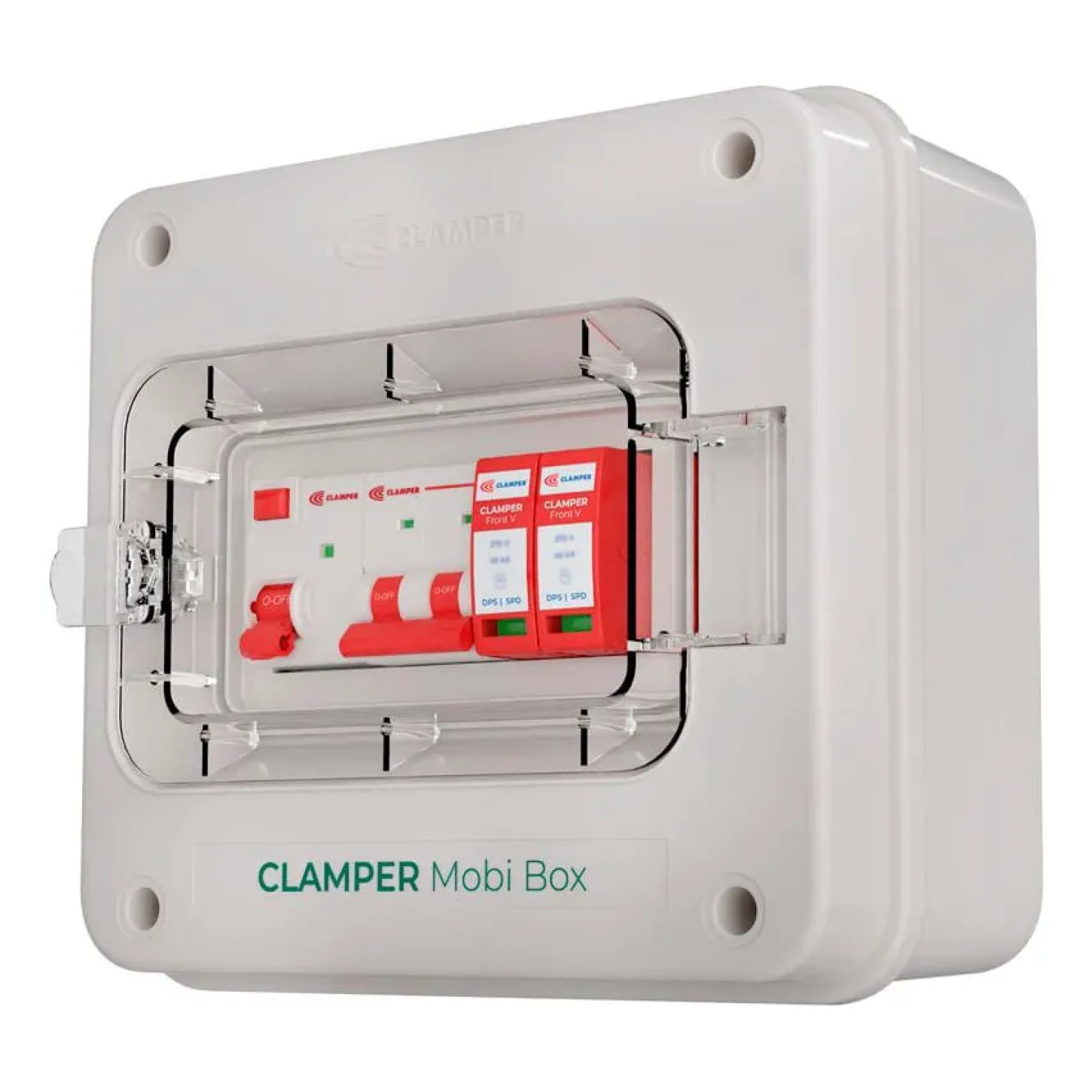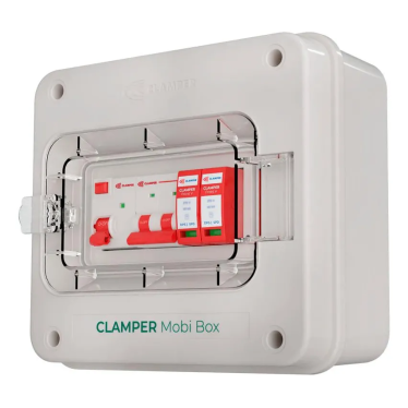 O CLAMPER Mobi Box 220V 8kW C é a solução de proteção para carregadores de veículos elétricos com Dispositivo de Proteção contra Surtos (DPS). Proteção Completa: Protege contra surtos elétricos, sobrecargas, curto-circuito e choques elétricos. - Projetado conforme as normas ABNT NBR 17019 e ABNT NBR 5410.